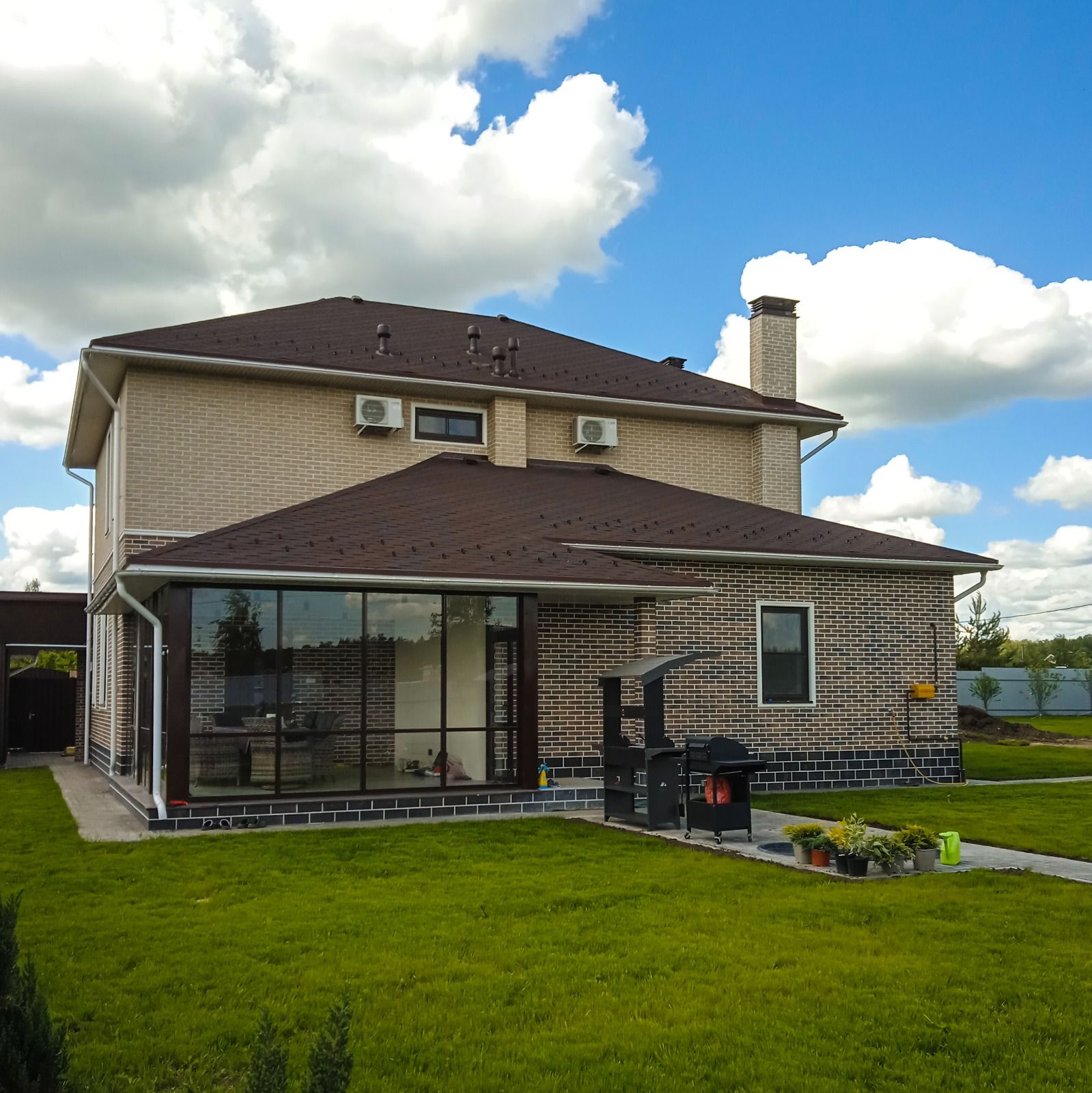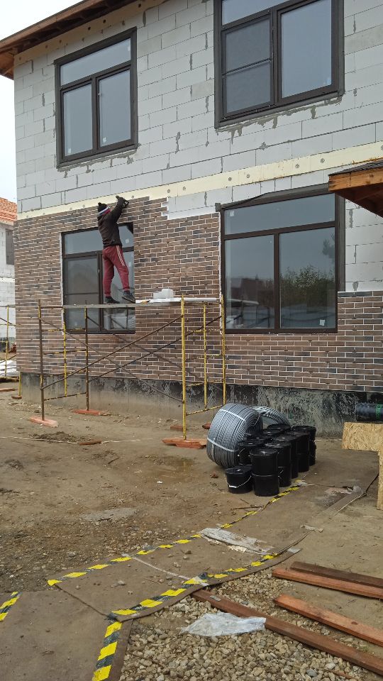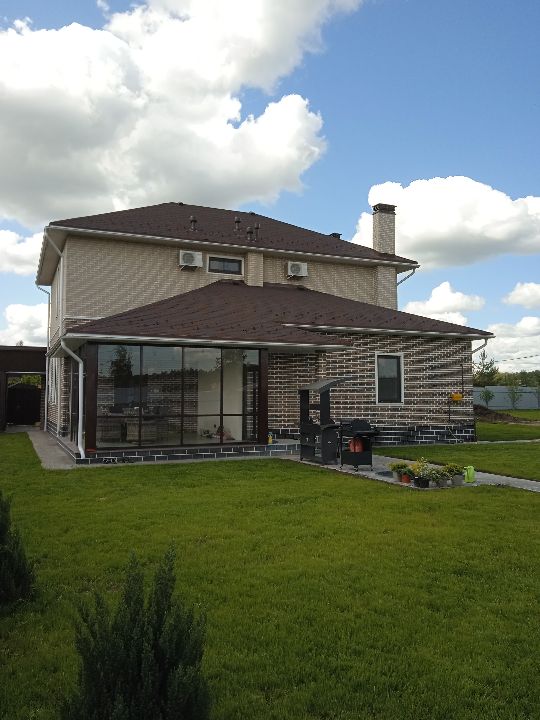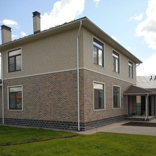 Построен по индивидуальному проекту. Площадь дома - более 220 кв.м. Строительство началось осенью 2021 года. Был залит плитный фундамент 300 мм. - 65 кв. м. бетона. Стены сделаны из газосиликатных блоков «Бонолит». Плиты перекрытия железобетонные. В 2023 году дом был готов к заселению. Заказчик переехал и живет там уже третий год вместе с семьей. Мы построили сам дом, произвели отделку (как наружную, так и внутреннюю), а также благоустроили придомовую территорию. Проект оказался настолько удачным, что тогда же, в 2023 г., в этом поселке нам заказали еще один такой дом по соседству, а в 2024 еще один!