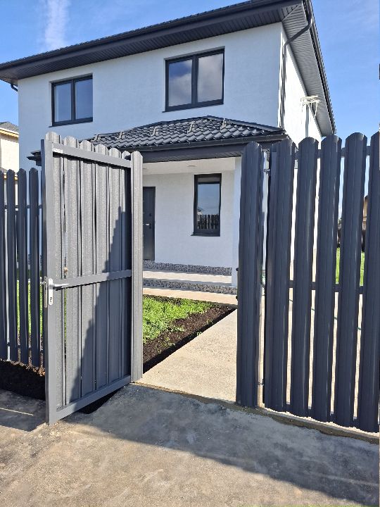 Энергоэффективный одноэтажный дом площадью 120 кв. м. Фундамент дома – плита 300 мм, с дренажем и отмосткой по периметру. Материал стен – газобетонный блок «Бонолит» 300 мм с утеплением минплитой (100 мм) и декоративной штукатуркой типа «Короед». Кровля с «холодным» чердаком из металлочерепицы от Grand Line. Строительство дома заняло 3 месяца, отделочные работы и благоустройство территории произведены за 4 месяца. Дом готов к проживанию.